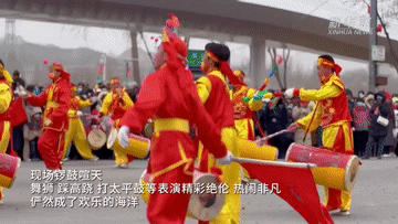 现场锣鼓喧天,舞狮、踩高跷、打太平鼓等表演精彩绝伦,热闹非凡,俨然成了欢乐的海洋。