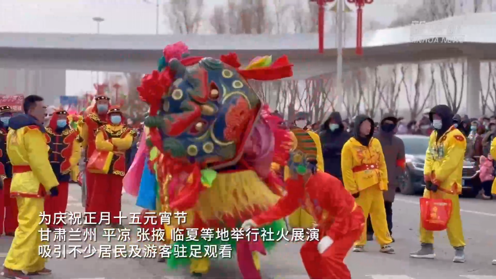 为庆祝正月十五元宵节,甘肃兰州、平凉、张掖、临夏等地举行社火展演,吸引不少居民及游客驻足观看。