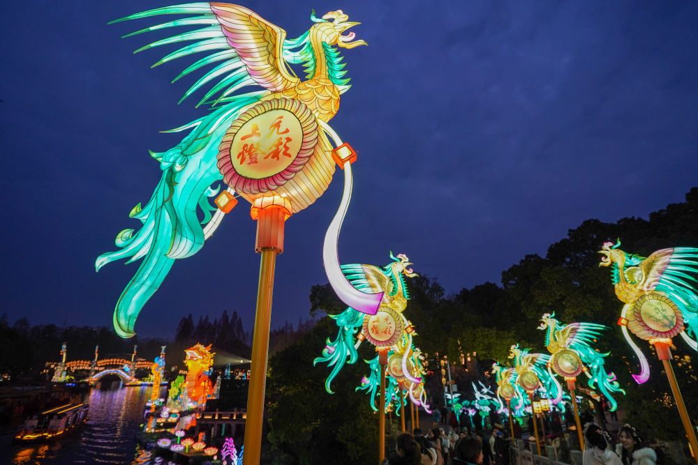 送花灯、猜灯谜、舞龙灯、抢滚灯等