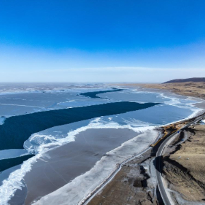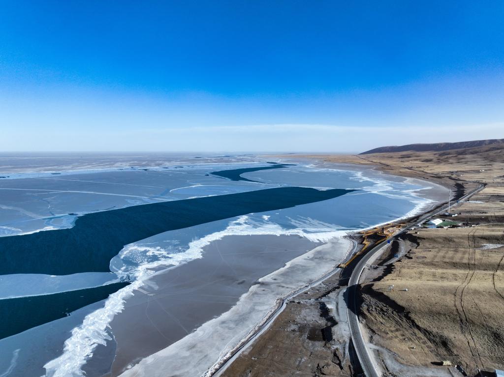 新华社西宁2月25日电(记者李琳海)初春,高原的阳光洒在青海湖冰面上,整个湖面被银色的光辉所笼罩。湖面上漂浮的碎冰如同破碎的琉璃,与纯净的蓝天和远处的雪山相映成趣,呈现出变幻莫测的湖冰盛景。