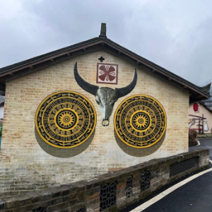 走在石坪村的乡间小道上,无论是瑶族婚礼墙画还是壮族铜鼓壁画,都展现着浓浓的少数民族风情。用旧青砖、瓦片、坛罐、原木建设的一批文创围栏,让村庄文化气息愈加浓厚。