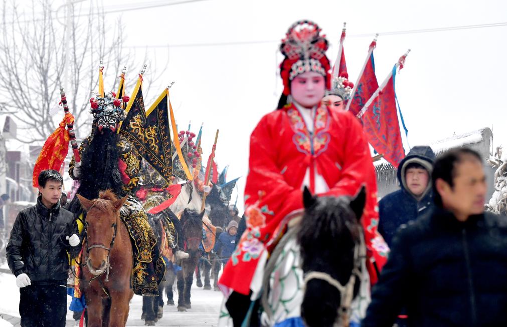 陕西省宝鸡市陇县东南镇黄花峪村在进行马社火游演。新华社记者 刘潇 摄