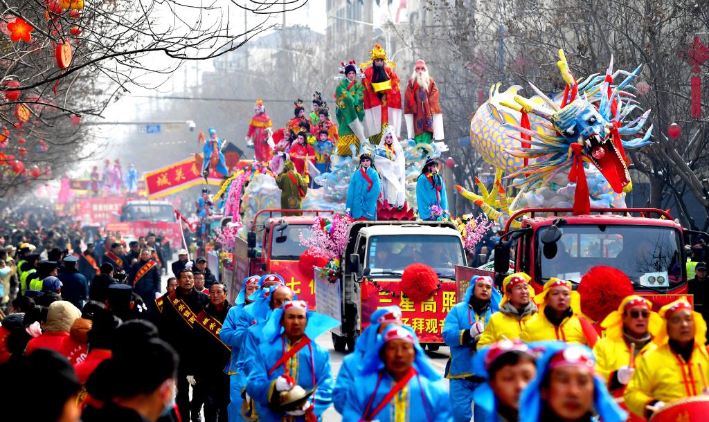 陕西省宝鸡市陇县东南镇黄花峪村在进行地台社火表演。新华社记者 刘潇 摄
