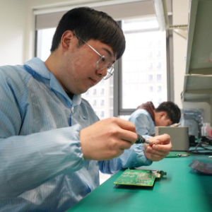 2月23日,在成都成达鸿业科技有限公司,研发人员在组装、测试产品。新华社记者 唐文豪摄