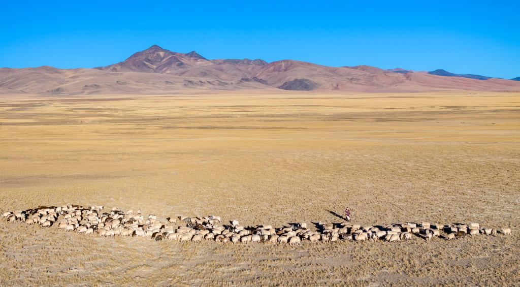 2023年末,记者在马迁村遇到独自放羊的丹增。那天,尼玛全县出现了大风天气,局地风力达到12级,傍晚的气温就达到零下十几摄氏度。尽管丹增穿着最厚的氆氇,只有眼睛露在外面,一整天的户外劳作还是让她浑身冰冷酸痛。“手指尖全都冻僵了,疼得不得了。”她说。