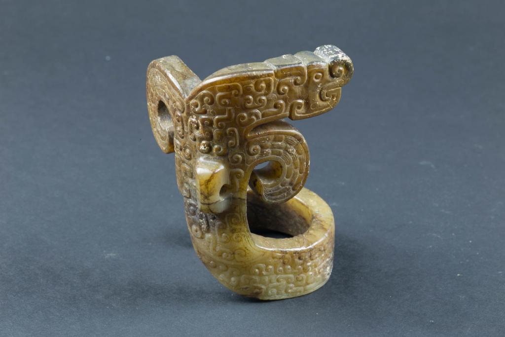 为什么说成形年代不晚于战国早期呢?专家表示,龙是中华民族的象征,经过漫长的文化晕染才成为今天的形象。龙头较小、一字角、卷凸鼻、闭口,龙身满饰龙首纹是春秋末期至战国早期的共同点。进入战国时期以后,龙身多以谷纹、涡纹等为主要填充纹饰,少见龙首纹。故推测该玉器的成形年代不晚于距今2000多年的战国早期。