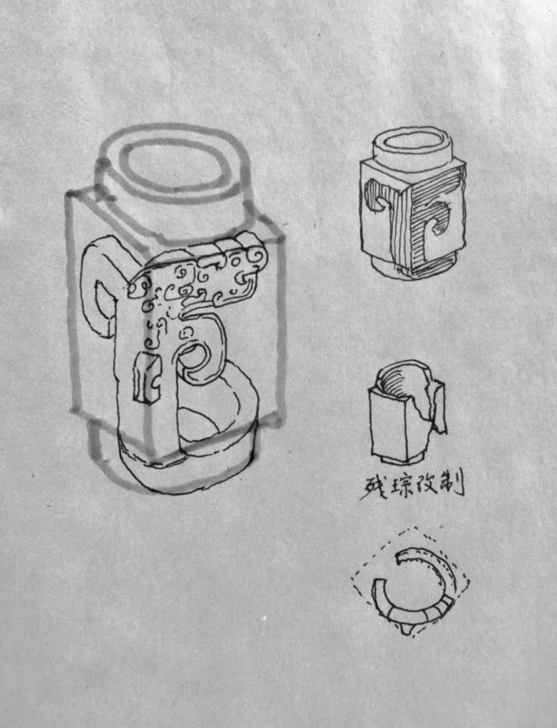 杨军说,古代玉器改制的原因通常有两种。一是惜玉。因玉器材质本身较为珍贵,且器物本身具有不可替代性。在后期使用中,受损的玉器往往被改做它器,或者是素器流传到后世被添上纹饰。这种情况在新石器时期就已经是普遍现象,商周时期仍较为常见,至战国及以后逐渐少见。二是创新。当一件玉器所能蕴含的意义不再符合时下的心境、价值观,人们就会破旧立新。比如,在奴隶社会,玉琮是至高无上的代表;春秋战国时期,以玉琮等礼器为象征的王权逐渐失去束缚力。人们的思维在开放中不断打破禁锢、推陈出新,表现在物质上,玉琮就成了这种社会情绪的释放载体之一。