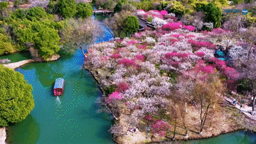 杭州西溪国家湿地公园里的梅花竞相绽放