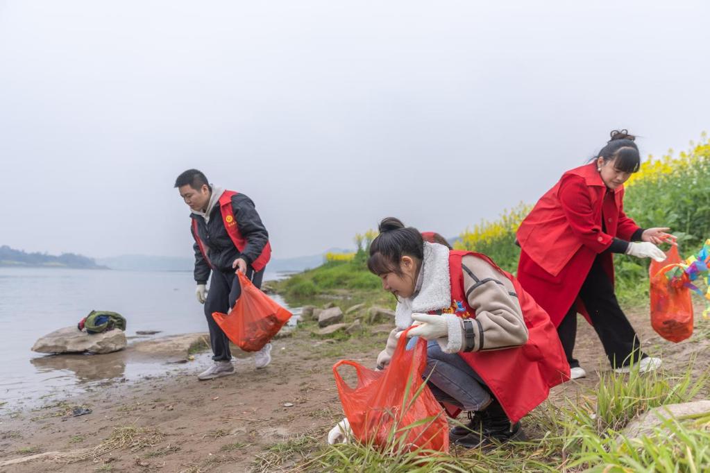 3月4日,重庆市永川区朱沱镇与四川省泸州市合江县白沙镇联合成立的“一抹志愿红”联合志愿服务队,来到永川区朱沱镇周公沱长江沿线,开展保护长江母亲河志愿服务活动。新华社记者 黄伟 摄