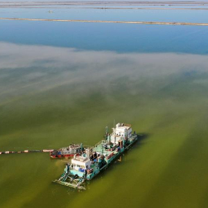 2023年2月2日,水采船在察尔汗盐湖中作业。新华社记者 张宏祥摄