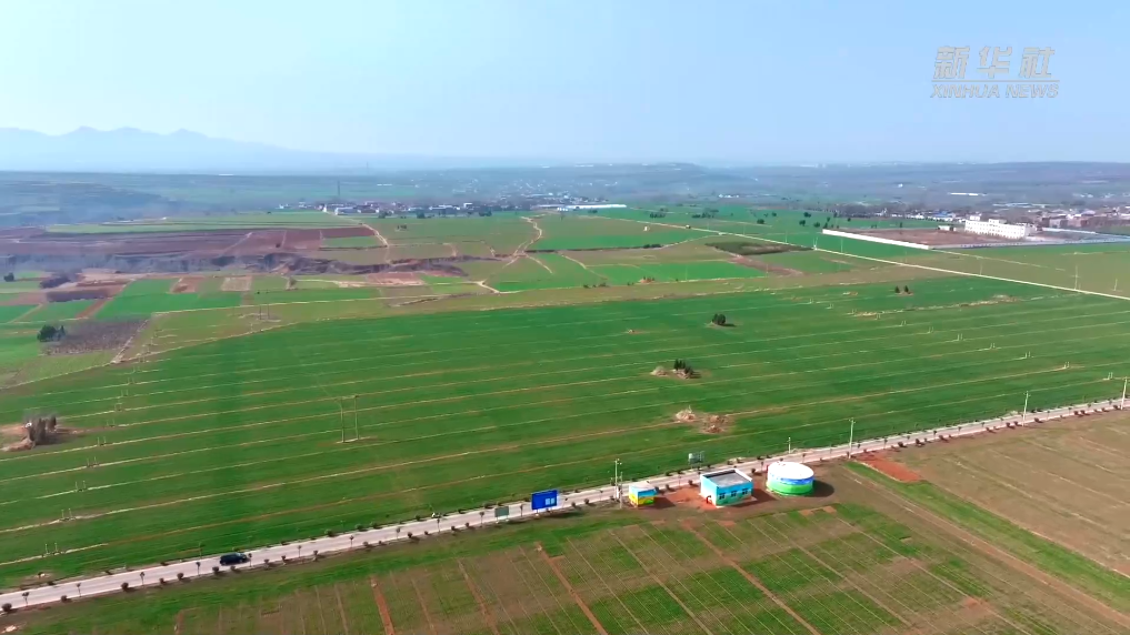 在河南省伊川县丘陵旱作区高标准农田春灌现场,自动灌溉、无人机施肥,田间地头一片繁忙,开始进入春管春耕时节。