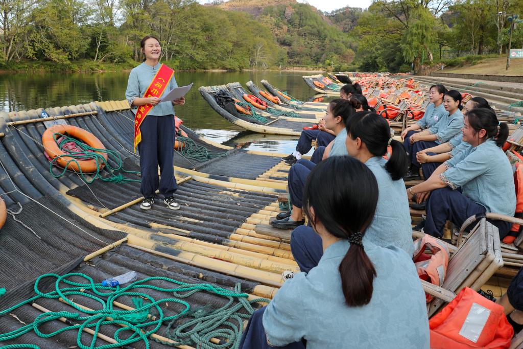 如今,陈佳的业务能力已成为公认的标杆,但她并没停下脚步:“要想讲好武夷故事,单靠个人的力量是不够的。我们竹筏工队伍文化水平参差不齐,首先得让大家全方位了解家乡,提高讲解水平。”