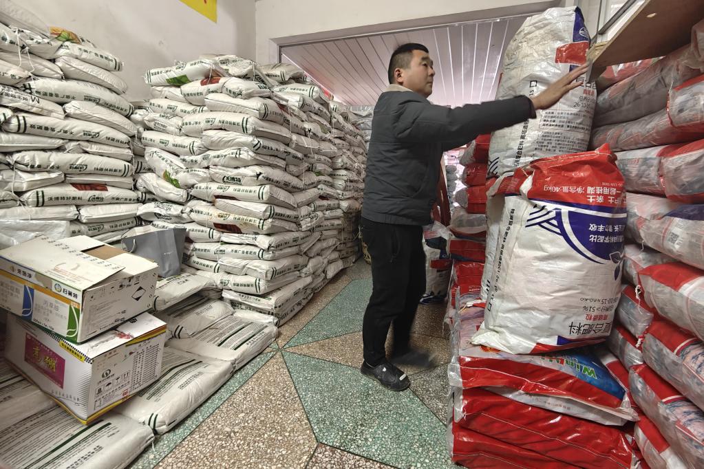 一名种粮大户正在清点农资。新华社记者周勉 摄