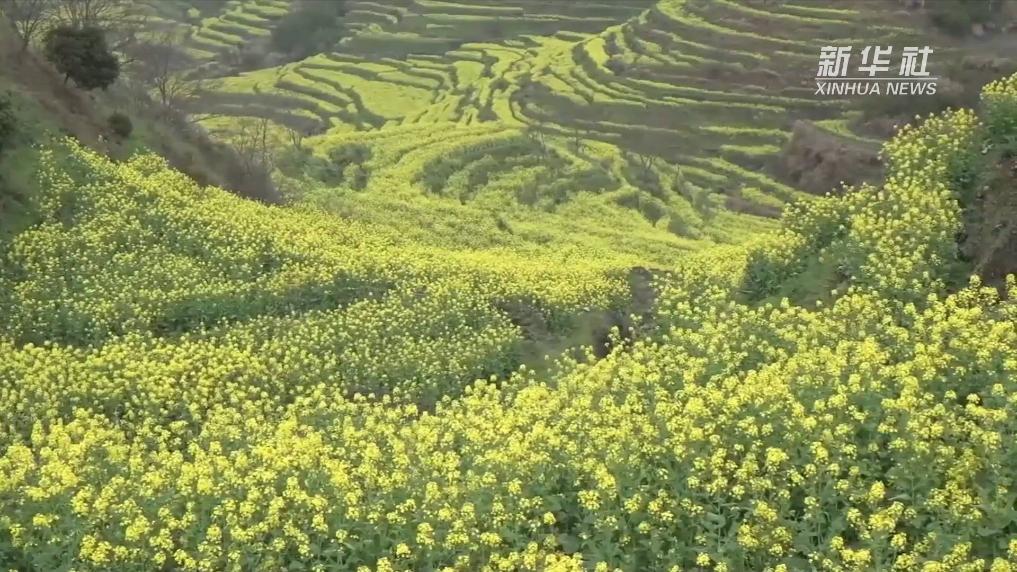 近日,婺源篁岭山间油菜花盛开,万亩梯田油菜花与远山、近水、粉墙、黛瓦相映成趣。