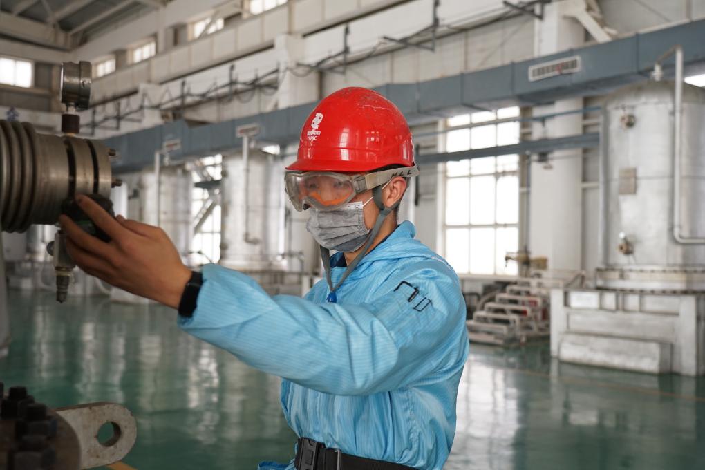 进入三月,西宁市室外的温度仍在零下,但在东川工业园区黄河水电公司新能源公司还原分场,工段长俞朝的头上却渗出细密的汗珠,他盯着反应炉小小的观察口,里面烧得通红的硅棒正在1000摄氏度左右的高温中缓慢“生长”。“我们将原料气体缓慢加入反应炉,在高温环境下,细细的硅芯就会慢慢变粗,就好像树苗长粗一样,等到几十个小时之后,‘树苗’长成‘大树’,硅棒就制成了。”俞朝说,硅棒生产出来后,要经过破碎、拉晶、切片等环节,最终才能变成光伏板上以及各种电子元器件中用到的多晶硅原材料。