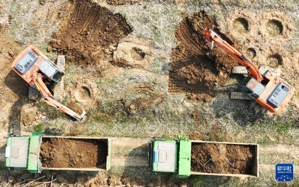 3月15日拍摄的陕北—安徽±800千伏特高压直流输电工程、岳西抽水蓄能电站开工现场。新华社记者 刘军喜 摄