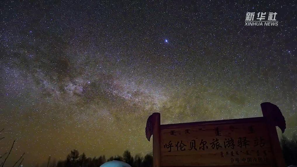 在“中国冷极”内蒙古根河市,夜幕降临后,星河会展现它的“流光溢彩”。