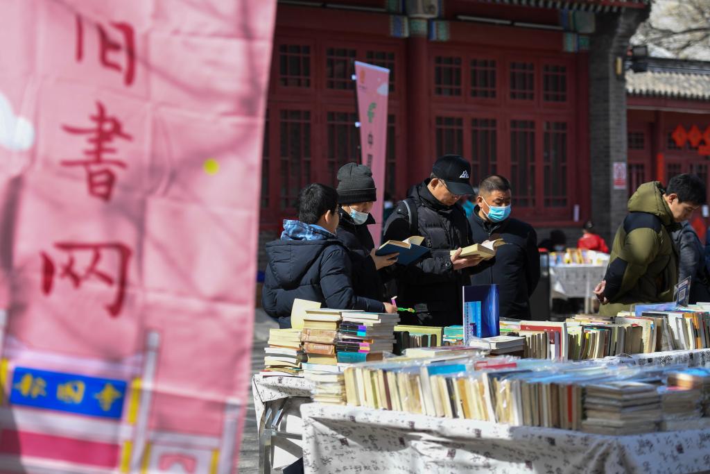 新华社北京3月17日电(记者杨淑君)春日周末,北京报国寺门前行人络绎不绝,寺内书香拂面,人们或手捧书卷细细品读,或因“淘”到“意外之喜”欢欣不已。