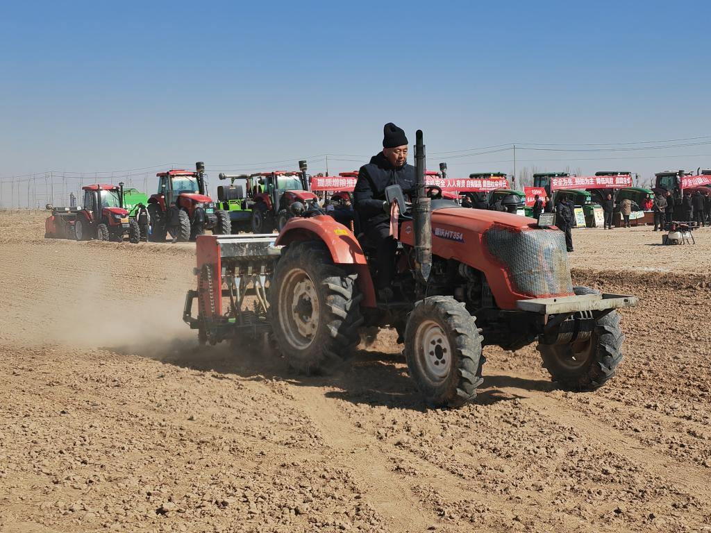 连日来,在临河区狼山镇光明村万亩小麦示范园区,20多台耙地机、播种机同时作业,将麦种和肥料一起播撒进地里。光明村村民马素平说:“今年我家48亩地全部种小麦,已经与企业签订订单,加上各种农业补贴,预计每亩地毛收入能达到2100元左右。”