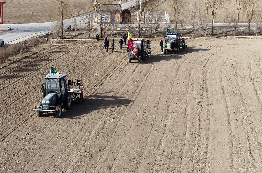 作为全国产粮大县的巴彦淖尔市五原县也正抢抓农时种小麦。记者在新公中镇永联村粮食种植示范园区看到,3台装有北斗导航系统的水肥一体化播种机按照设定的路线匀速前进,播种、施肥、铺设滴灌管等作业一气呵成。种粮大户郝存林说:“今年我们计划种植小麦1100多亩,全部利用北斗导航系统种植,解决了过去播种不直、行距不匀的问题,确保小麦出苗率、保苗率高。同时,采用水肥一体化滴灌技术,解决了人工浇水难、追肥难的问题。”