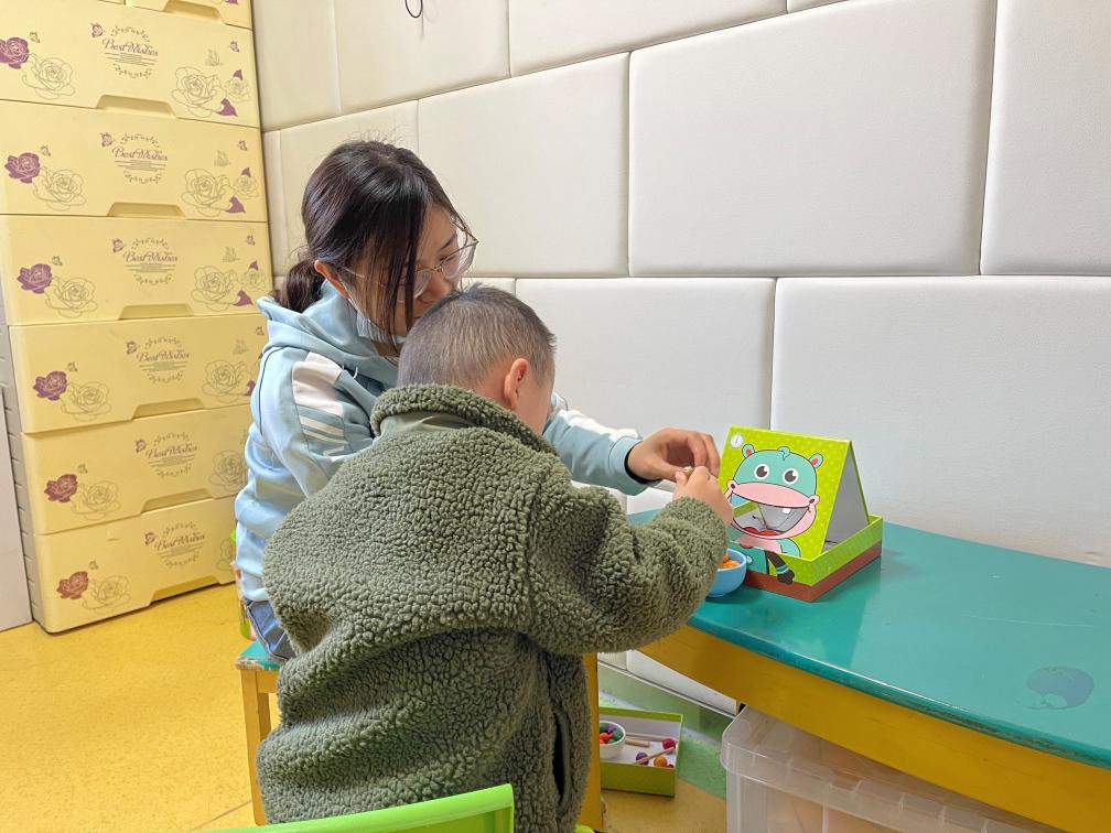 2018年,小阳(化名)妈妈带着不到2岁的女儿来到这里接受康复训练。作为小阳的康复老师,谷长芬和中心其他老师共同给小阳制定了一套完整的个别化培训课程。从最开始的“失语”“呆滞”状态,到如今在认知理解、语言表达、适应能力和社会交往等方面明显提高,让小阳的家人看到了新的希望。