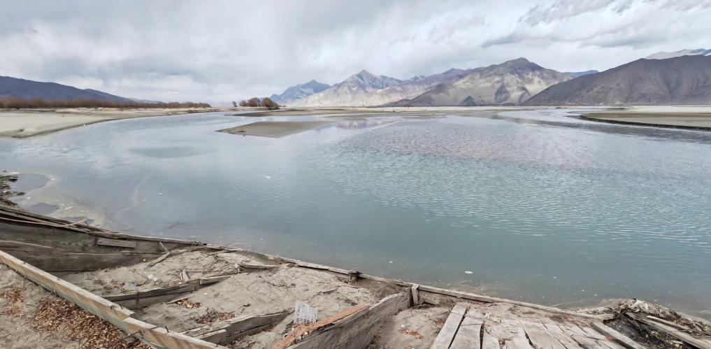这是雅鲁藏布江扎囊段岸边的桑耶渡口和废弃的木船(2月23日摄)。新华社记者刘洲鹏 摄