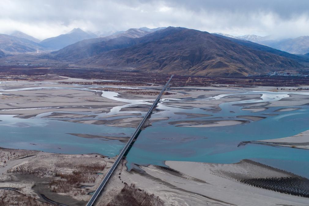 这是位于西藏山南市扎囊县的扎囊特大桥的航拍画面(2月23日摄)。新华社记者旦增尼玛曲珠 摄