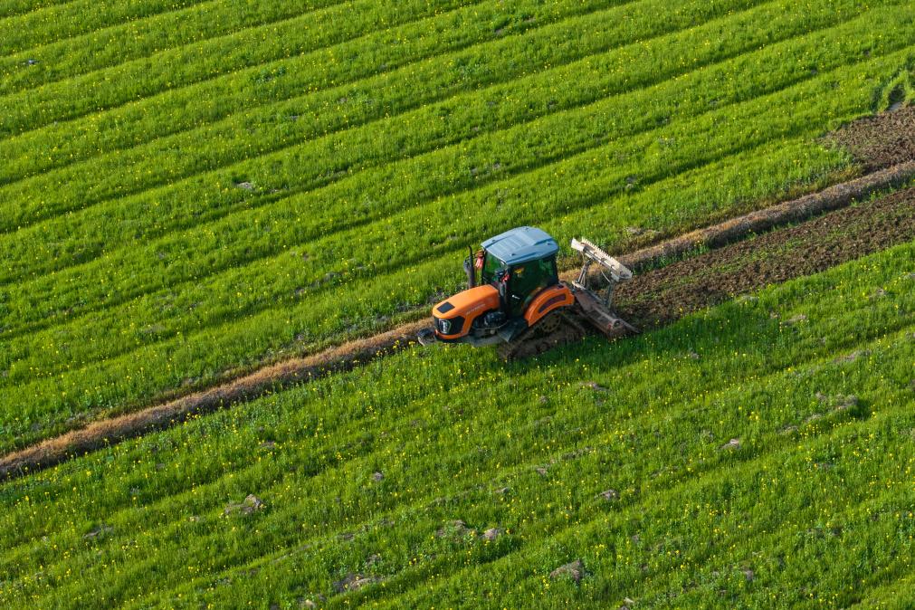 3月19日,在鼎城区谢家铺镇,村民驾驶农机翻耕田地(无人机照片)。新华社记者陈思汗 摄