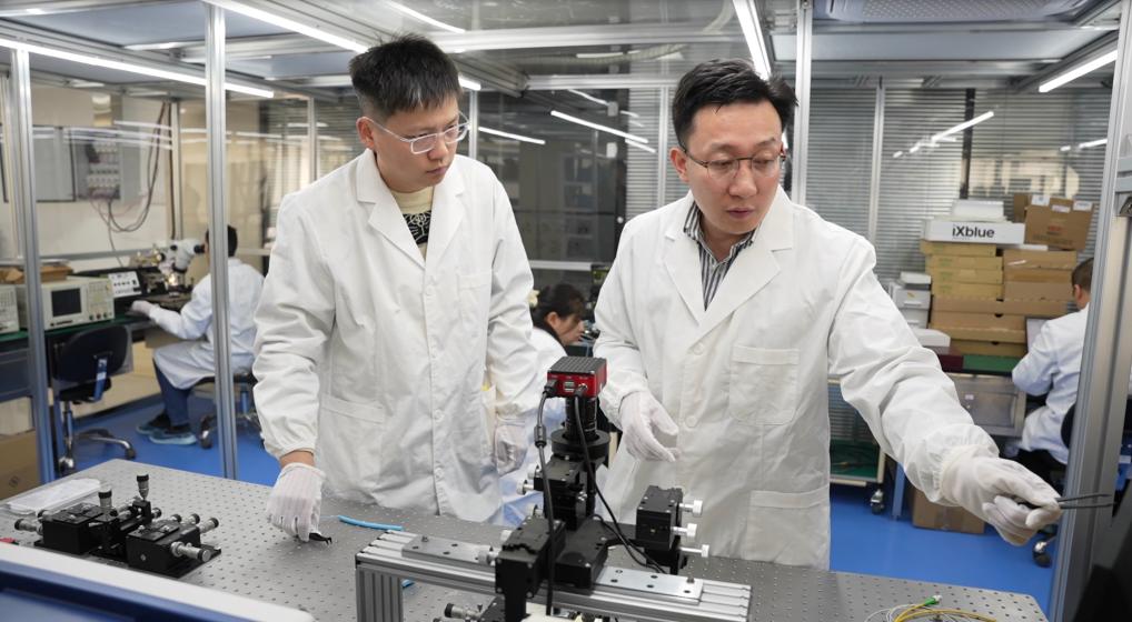 在一间实验室里,科研人员正围坐在操作台旁,测试一个瓜子仁般大小的光电子器件的各项性能指标。“这还算大的。”实验室主任王文亭用镊子夹起这个“大”器件介绍道,我们的研究和日常生活关系密切,比如移动通信、自动驾驶等都能应用到我们的技术。