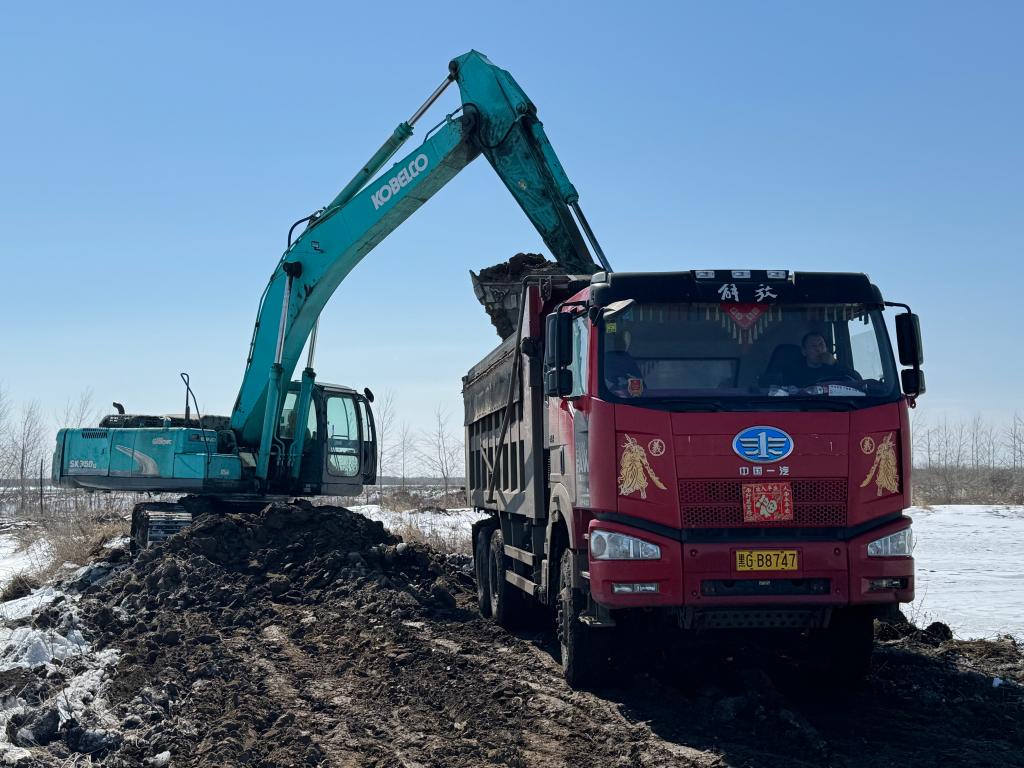 2024年,黑龙江省将建设高标准农田1400万亩。在虎林市虎林镇的一处高标准农田建设现场,施工队伍正在修建乡间道路,挖掘机等机械设备穿梭其间,一派繁忙景象。