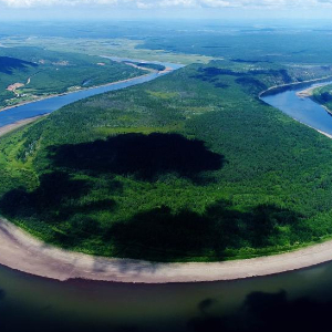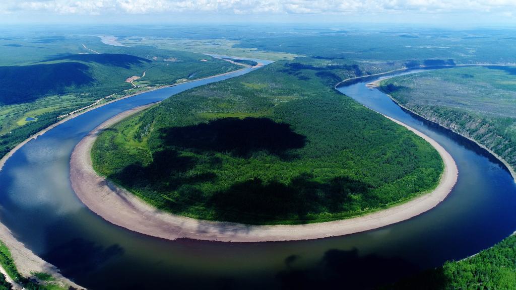 黑龙江流经大兴安岭地区图强林业局境内,形成“龙江第一湾”(2017年8月2日摄)。