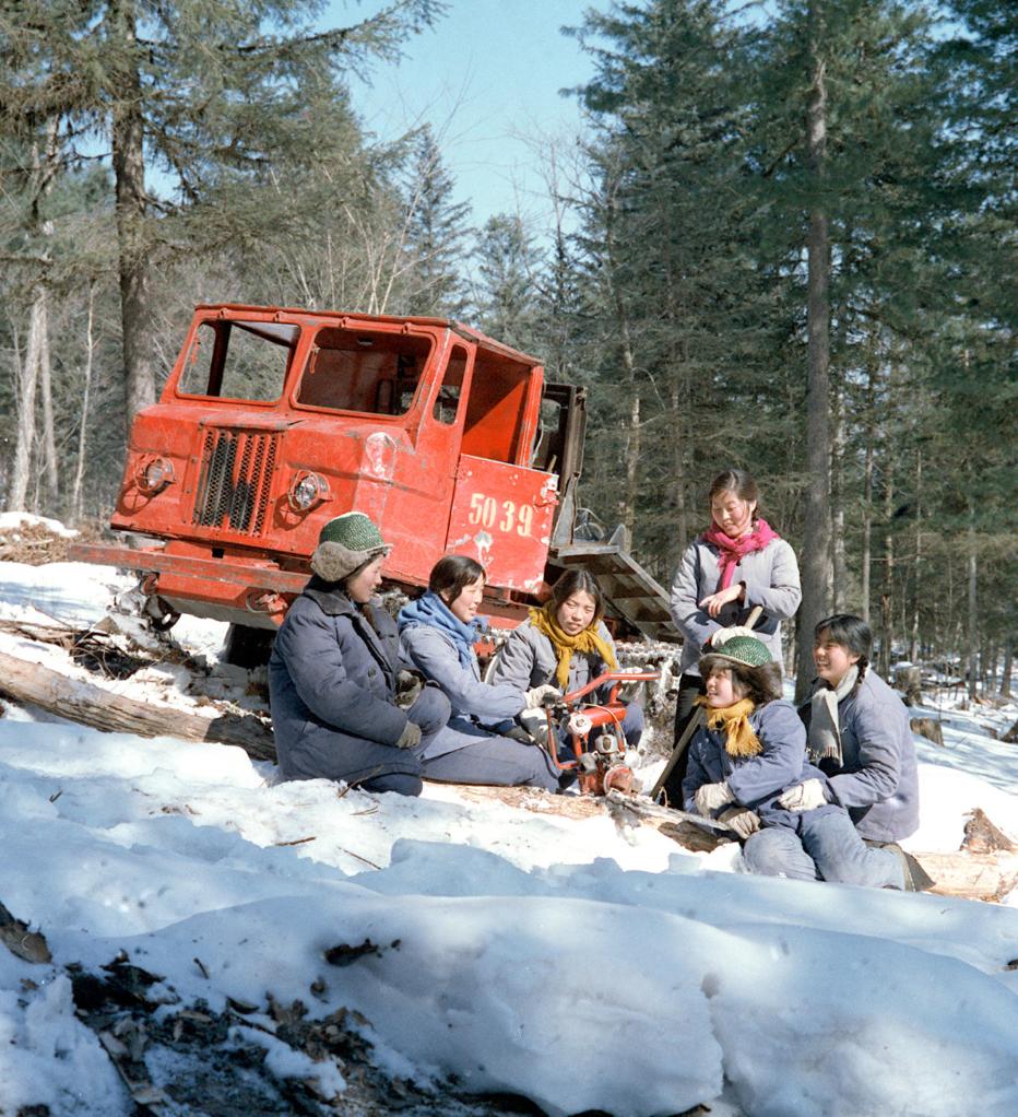 1978年,小兴安岭带岭林业局碧水女子采伐队在劳动间隙讨论工作计划。