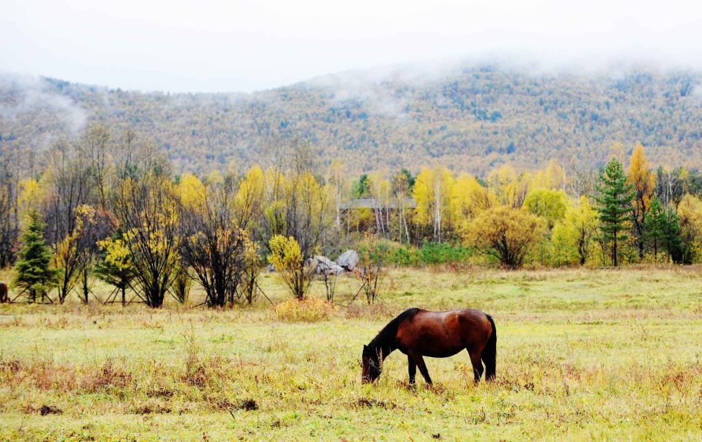 2009年9月24日拍摄的大兴安岭地区漠河北极村秋色。