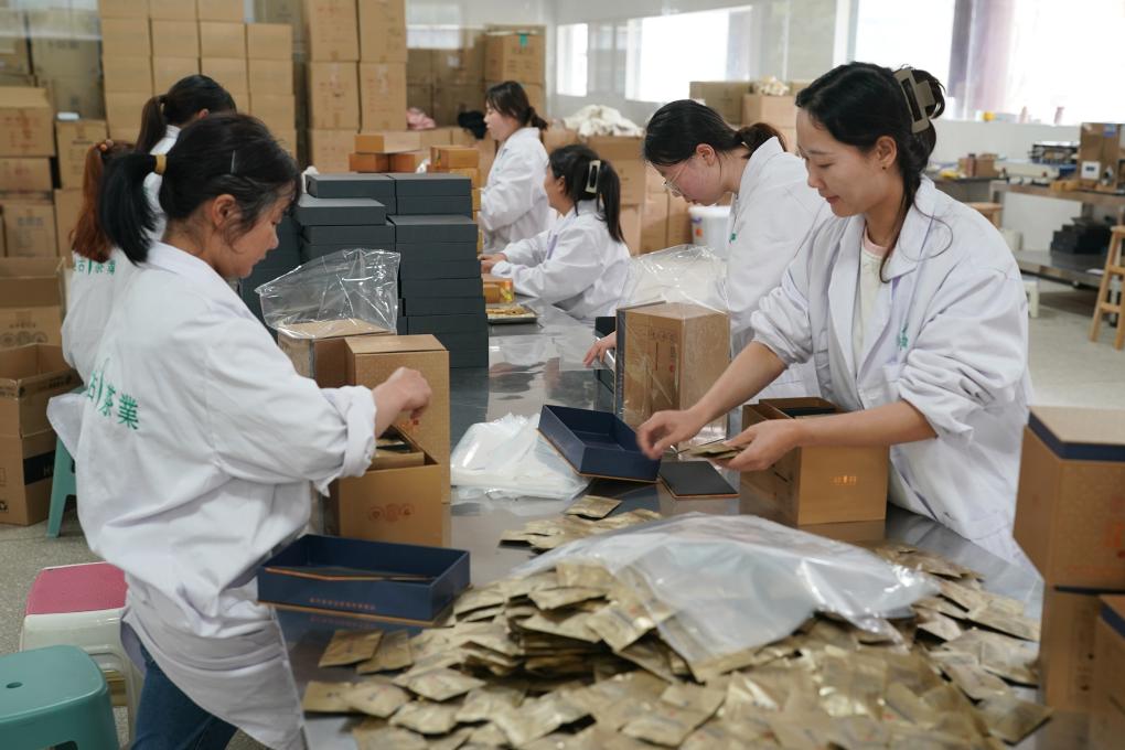 图为陕西省紫阳县焕古镇一家茶叶生产企业工作人员在包装新茶。新华社记者邵瑞 摄
