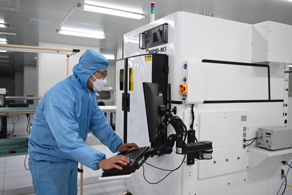 3月28日,在雄安科创中心中试基地,芯联新(河北雄安)科技有限公司工作人员在调试芯片生产设备。新华社记者 牟宇 摄