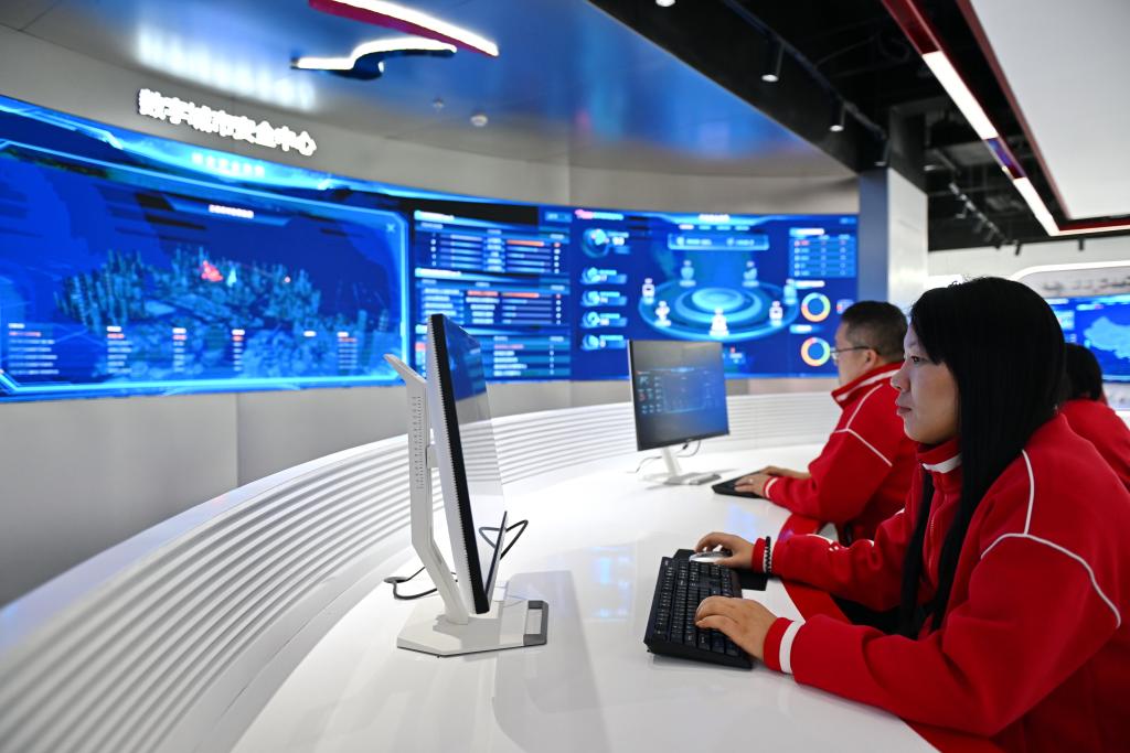 入驻雄安新区中关村科技园的一家科技型企业的工作人员在企业展厅内工作。新华社记者 牟宇 摄