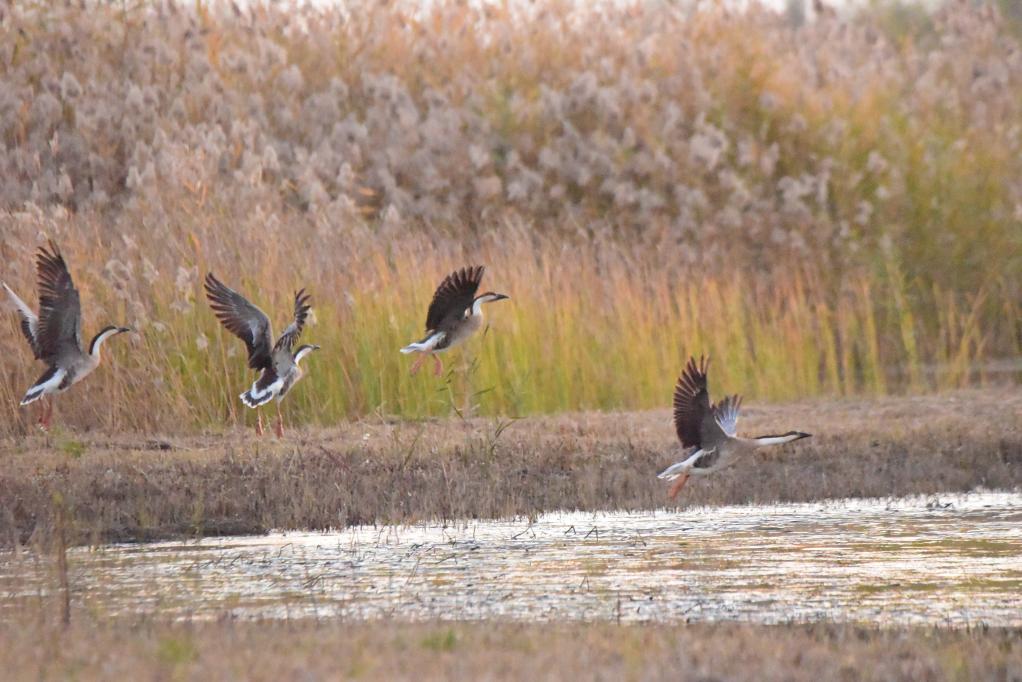 雄安新区孝义河河口湿地的野生鸟类。新华社记者 朱旭东 摄