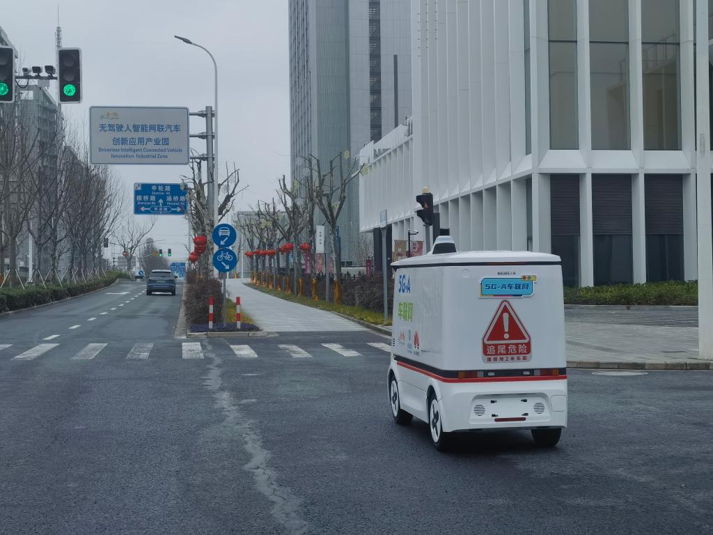 接入5G-A网络的无人小车在上海浦东金桥智能网联汽车测试示范区内运行。新华社记者 陈爱平 摄