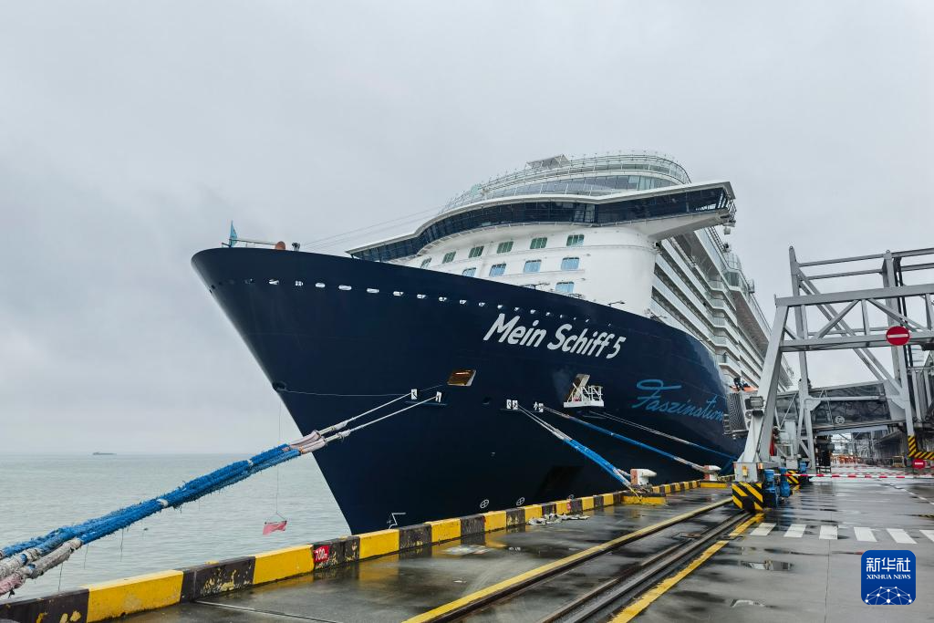4月6日,“迈希夫五号”邮轮停靠在上海吴淞口国际邮轮港。新华社记者 陈爱平 摄