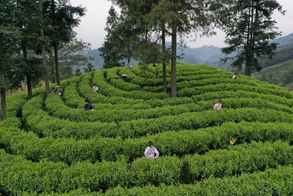 春光明媚,位于武陵山脉腹地的湖南省湘西土家族苗族自治州,茶山青翠,茶叶吐绿。茶农们挎着竹篓,三三两两分散在茶园里。