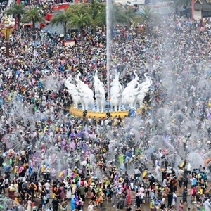 西双版纳傣族自治州的泼水节在4月13日至15日举办,每天都会举办各类文化活动,比如花车游行、放飞孔明灯、传统舞蹈表演等活动。在节日的最后一天,取自澜沧江的吉祥水,在取水少女的护送下到达泼水广场,当地人身着傣族盛装,敲响金铓锣,打起象脚鼓,跳起团结舞,迎接八方宾客,在广场上互相泼水来庆祝傣历新年。
