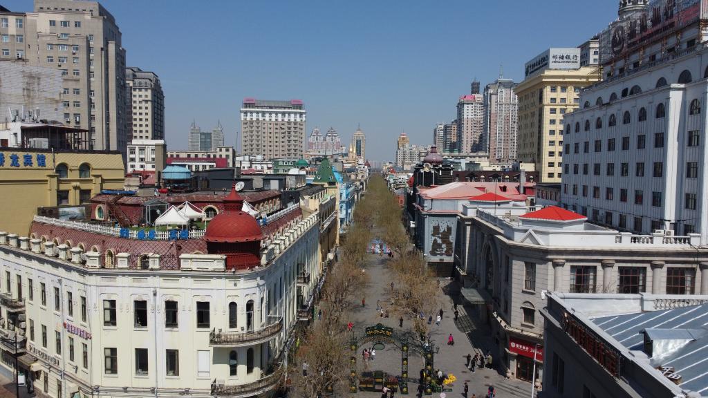空中俯瞰中央大街街景。(顾景坤 摄)
