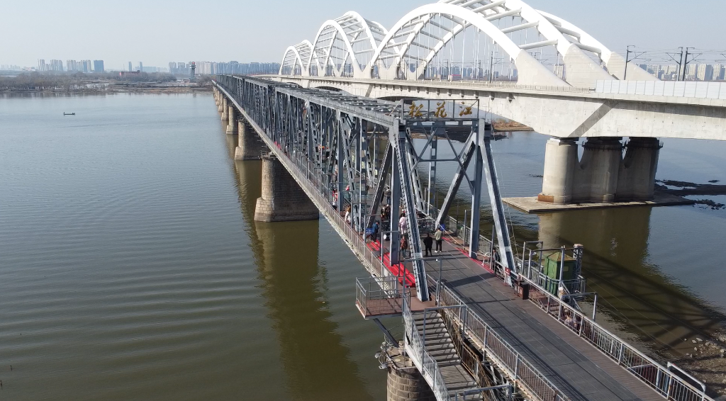 1934年的春,萧红与朋友们也曾穿过中东铁路桥向北而行,她在文章中记录,“松花江在脚下东流,铁轨在江空发啸,满江面的冰块,满天空的白云……看不见绿树,塞外的春来得这样迟啊。”