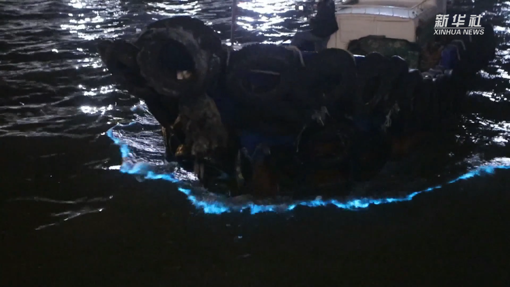 4月25日晚,在温岭市石塘镇海域出现“蓝眼泪”奇观。