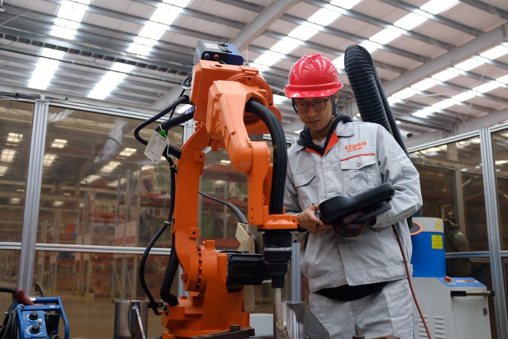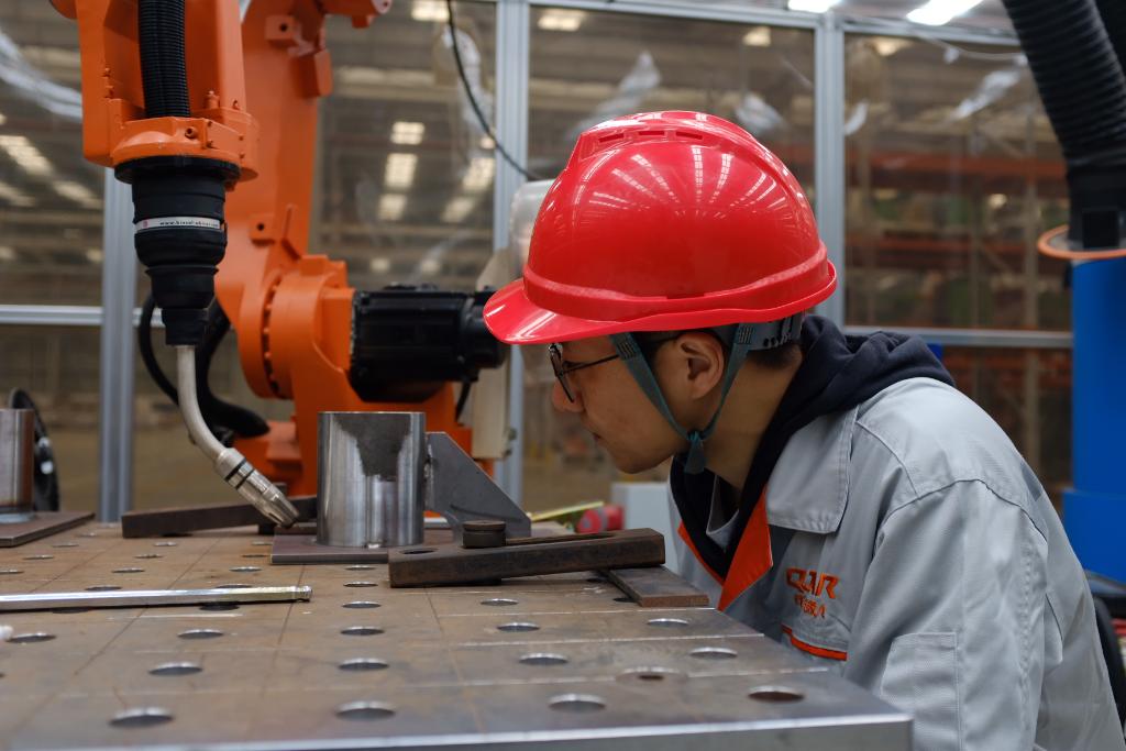 手持控制面板设置参数,给焊接机器人进行编程,使其能按照既定轨迹对工件进行一次性焊接……这是机器人编程师王洋如今的工作日常。回忆起刚参加工作时,他还只是一名普通的焊接工艺师。