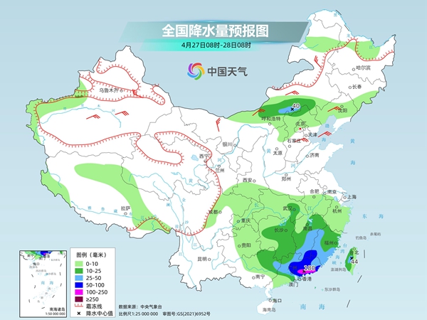 明天,内蒙古中部、江南大部、华南中东部、台湾岛等地部分地区有中到大雨,其中,江西南部、福建南部、广东中东部等地部分地区有暴雨或大暴雨。