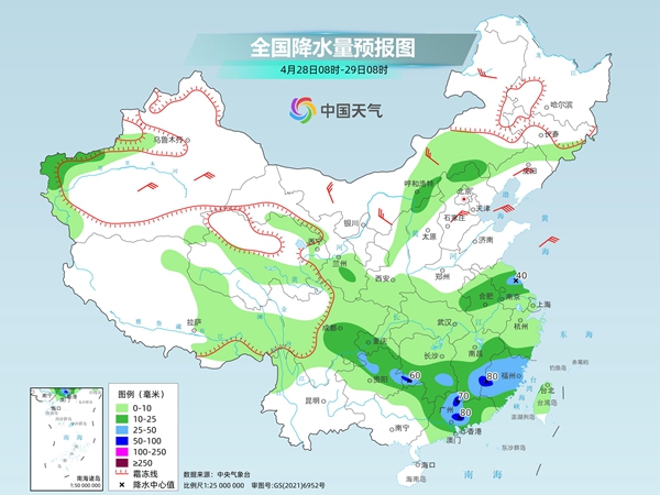 中央气象台预计,今天,福建东南部、广西中北部、广东中东部、台湾岛等地部分地区有大到暴雨,其中,广东东南部、台湾岛西部等地部分地区有大暴雨。