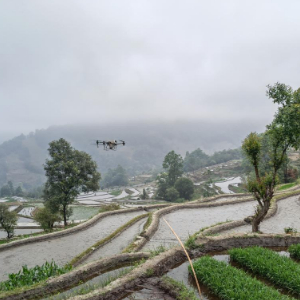 4月9日,元阳县牛角寨镇良心寨村运用无人机进行播种。(叶秉凤 摄)