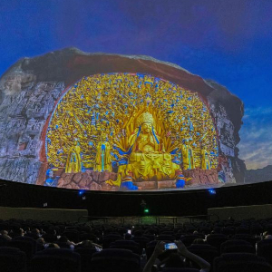 2022年7月首映的球幕电影,是活化利用大足石刻的另一个尝试。“除了多角度、全景式的体验,影片还让一些隐藏在深山中游客难以见到的石窟造像、一些被岁月侵蚀的石刻艺术,在影像中活了起来。”大足石刻研究院院长蒋思维说,电影中的绝大部分素材都源于大足石刻文物数字化复原成果。