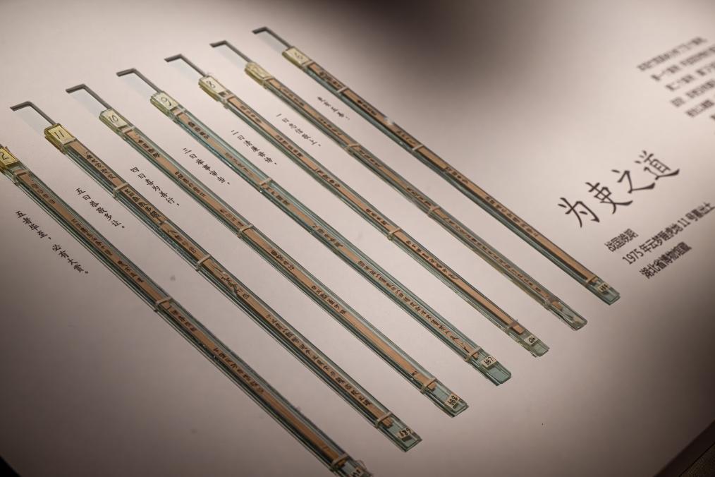 湖北省博物馆副馆长王先福介绍,“喜”是一位坚守“为吏之道”的秦代基层官吏。展览通过选取M11秦简《叶书》《编年记》及相关信息,完整呈现了墓主人“喜”的一生——热爱工作,忠于法律;参军入伍,能文能武。
